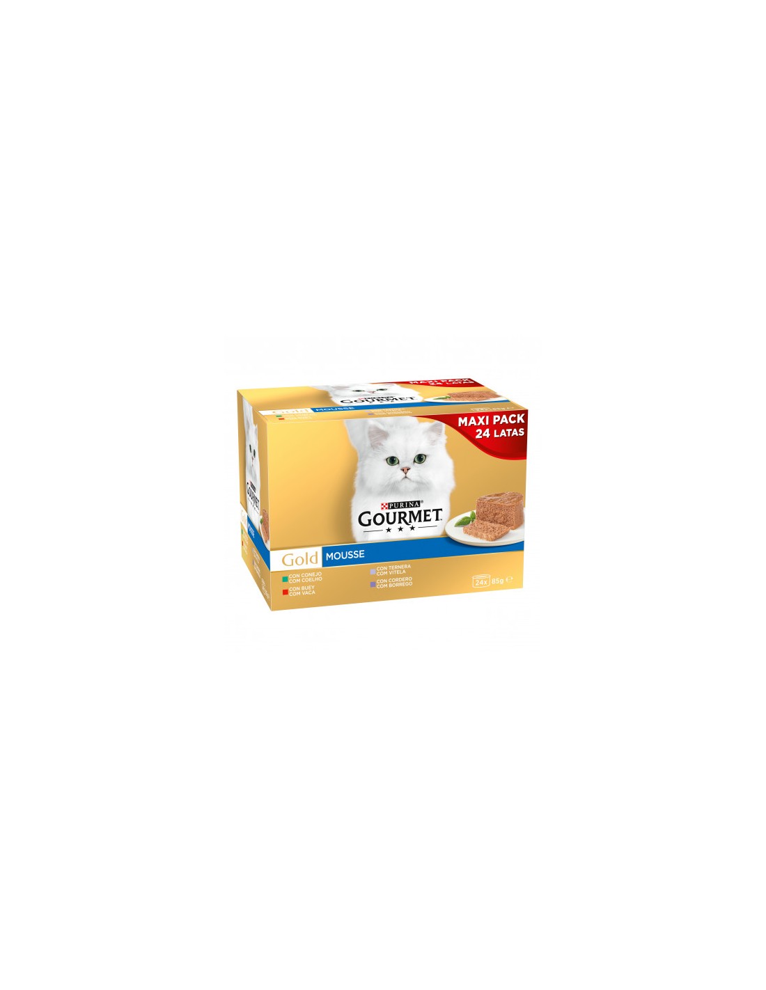Purina Gourmet Gold Adult Pack Mousse 4 sabores. Latas Gatos Adultos Todas las Razas Dieta Normal Conejo Buey Ternera Cordero