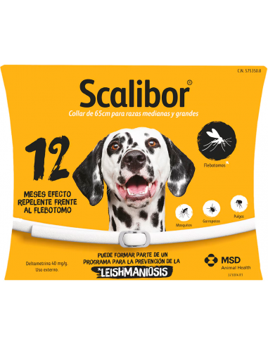 El collar antiparasitario Scalibor está indicado para proteger a su mascota frente a los principales parasitos, Scalibor posee un efecto repelente (antialimentación) frente a los flebotomos transmisores de la leishmaniosis canina. También protege contra pulgas y garrapatas. Tiene un efecto repelente y protector contra los flebotomos, mosquitos, garrapatas y pulgas.